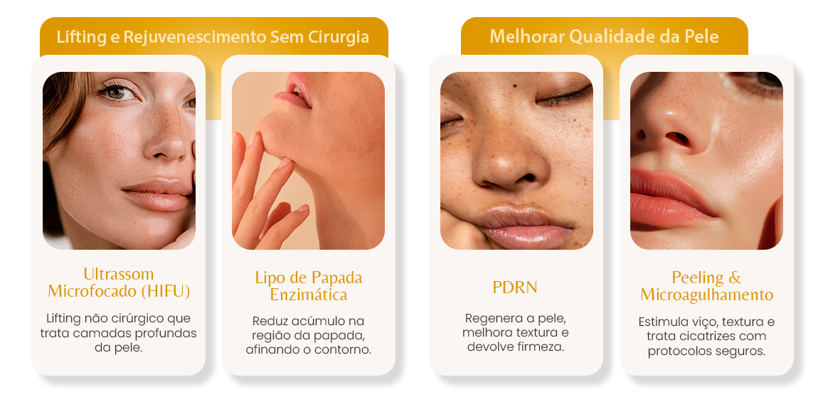 Alguns procedimentos mostram efeito imediato, outros evoluem com o tempo. Mas em todos os casos, você perceberá sua melhor versão voltando com naturalidade.